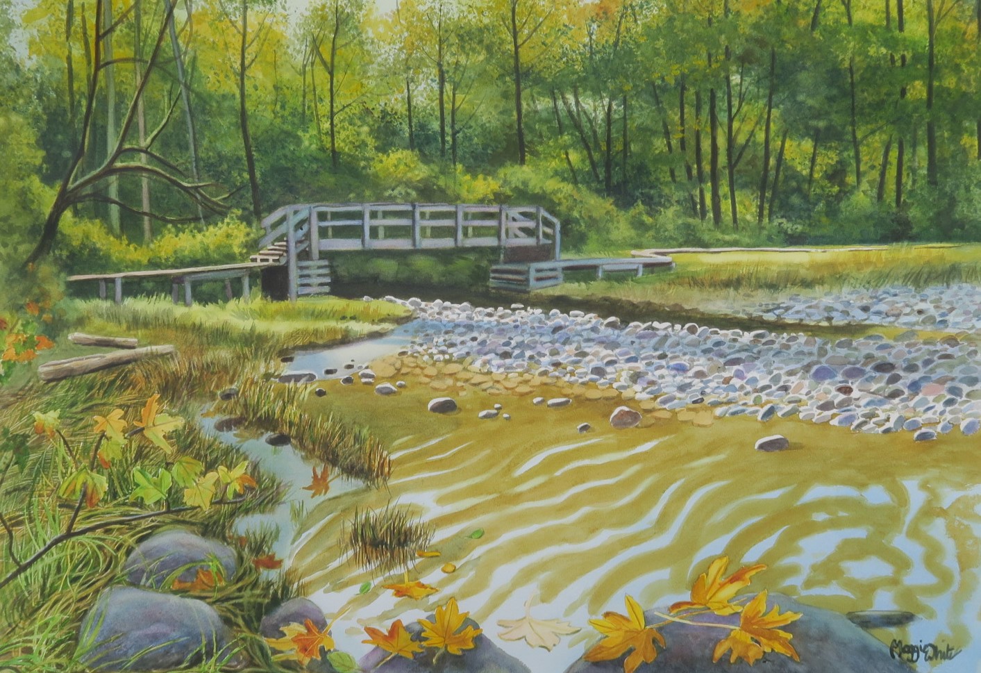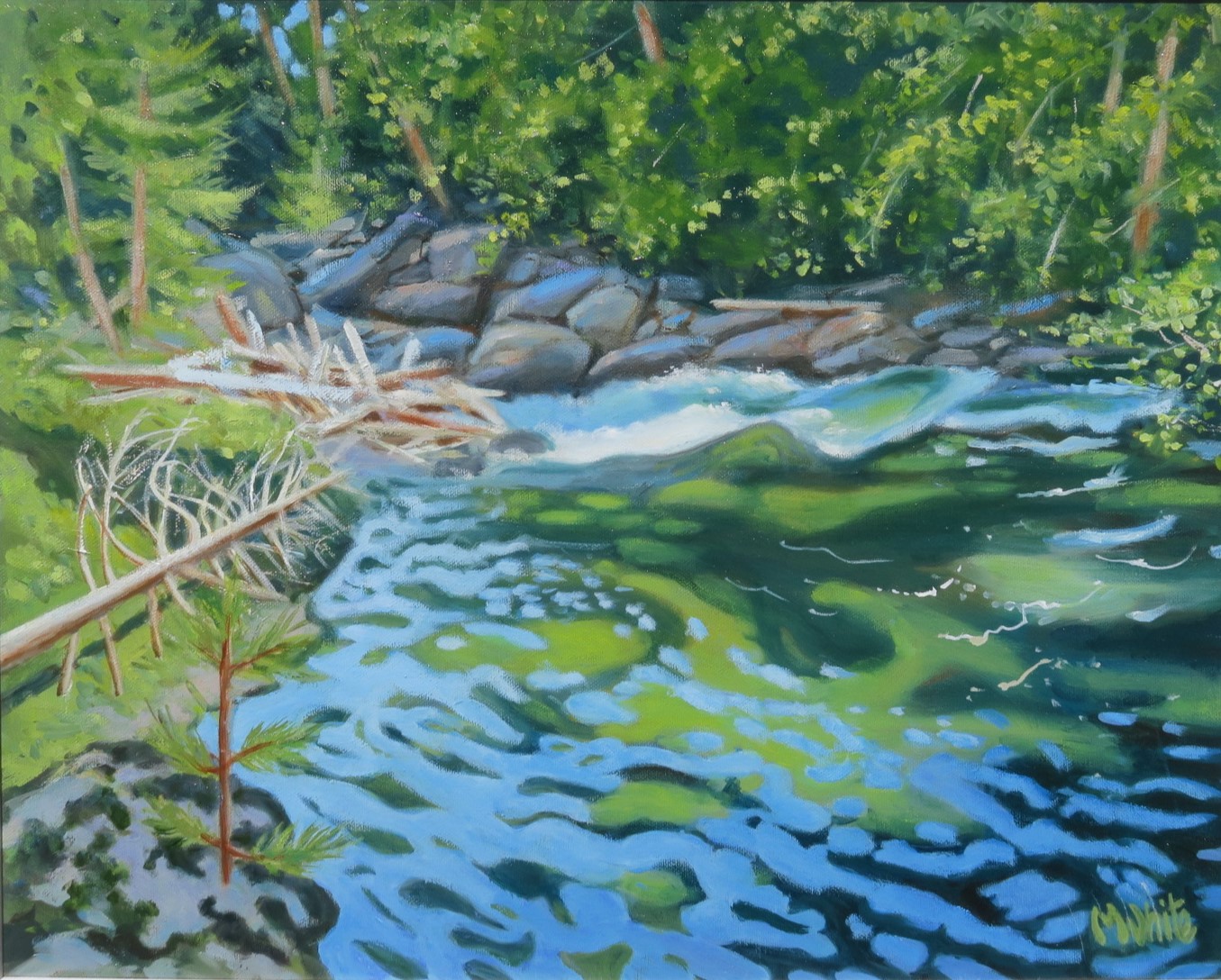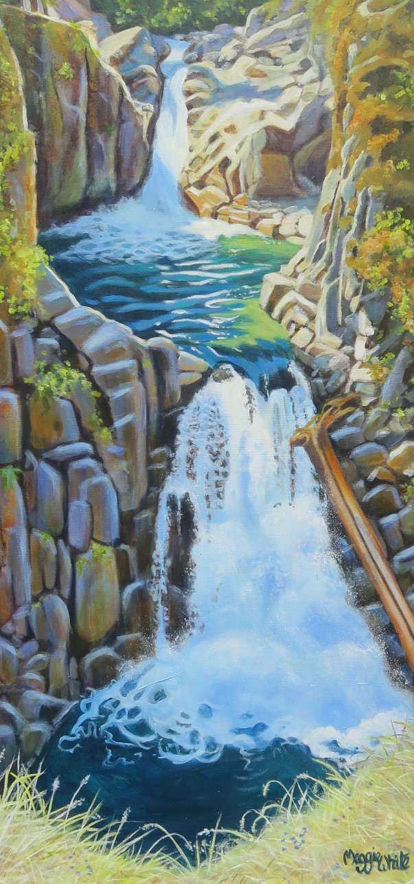 I have always been inspired by nature and scenery everywhere. I live in Port Moody on the Burrard Inlet so that features often in my work. For a while I had a studio in Tofino as well as Port Moody so stops on the way there, such as waterfalls are also favourite subjects to paint.