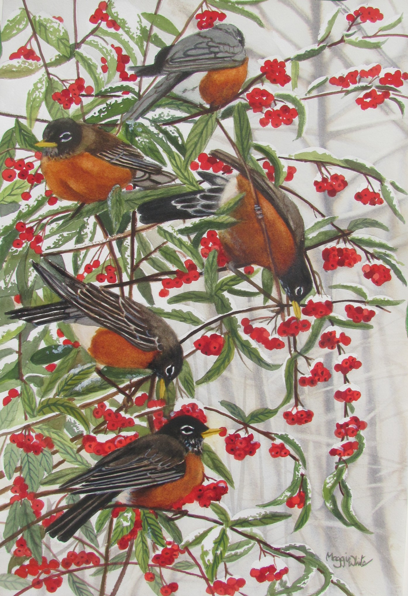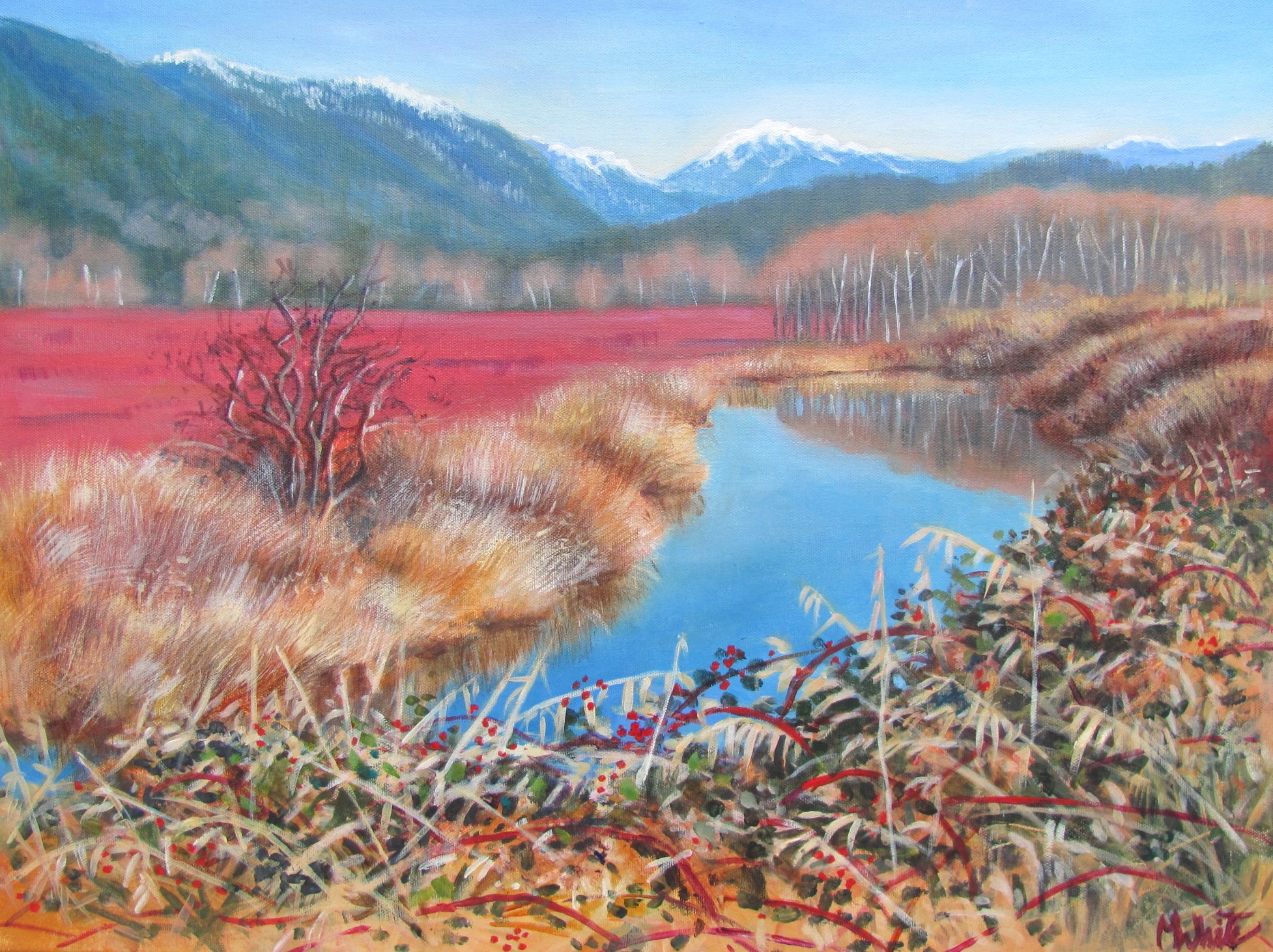 I love painting snow and winter scenes. I have always made Christmas cards and for many years donated an image to the B.C. Children’s Hospital for their Christmas card program which raises thousands of dollars every year. The originals sold at their auction. As well as Vancouver scenes, I also like to paint the inlet in front of my home as I have easy access to it when it snows, and it never disappoints. The inlet is also my muse which is why my business name is “Inlet Arts.”